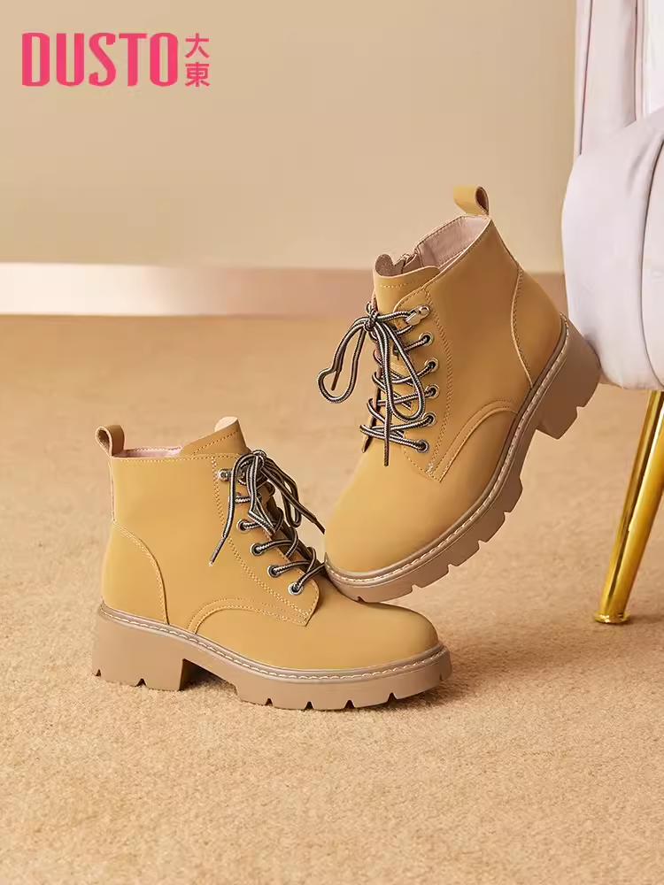 戶外英倫大黃靴女款 駱駝馬丁靴女鞋 新款 厚底短靴工裝 2025秋季 靴子