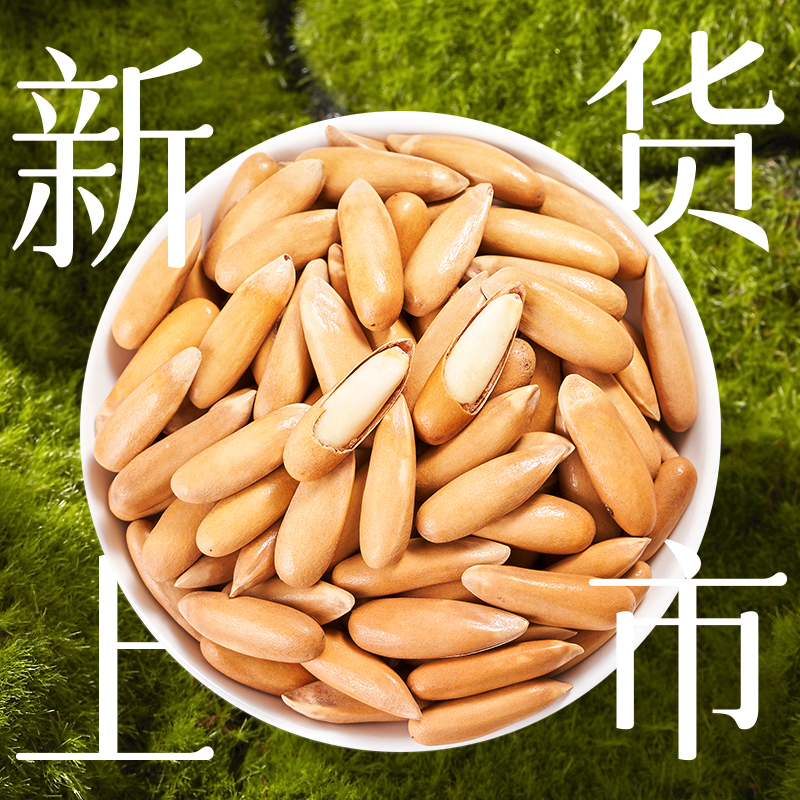 百草味東北松子大顆粒500g手剝開口休閑零食干果送禮新貨堅果休閑
