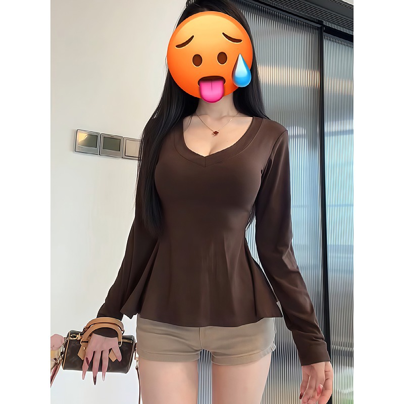 溫柔V領(lǐng)荷葉邊長袖 t恤女秋冬小眾正肩收腰顯瘦打底衫 大碼 法式 上衣抖音小紅書同款網(wǎng)紅熱銷 - 大碼內(nèi)搭 - 淘寶網(wǎng)