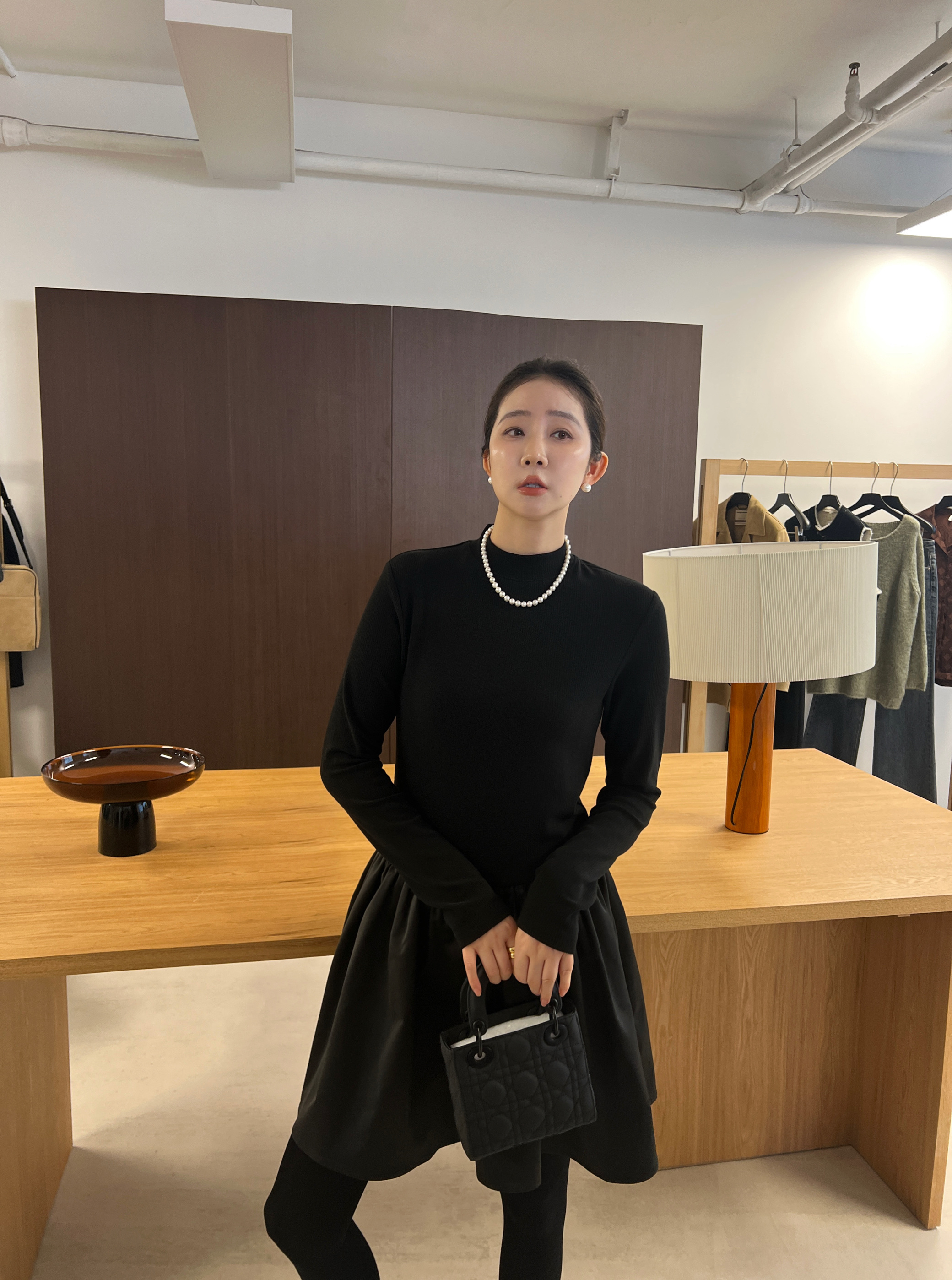 WIDELIA立領(lǐng)氣質(zhì)連衣裙女秋冬內(nèi)搭設(shè)計感a字蓬蓬修身 拼接小黑裙潮