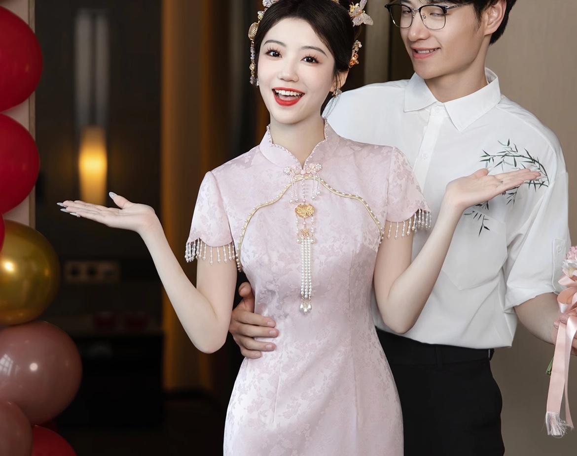 出閣嫁衣回門便裝 長款 粉色立領(lǐng)新中式 改良旗袍敬酒服小個(gè)子年輕款抖音小紅書同款網(wǎng)紅熱銷 - 旗袍 - 淘寶網(wǎng)
