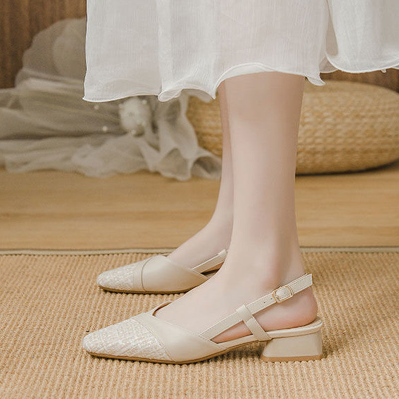 新款 法式 真皮包頭涼鞋 女2023秋季 方頭小香風(fēng)拼接粗跟后空矮跟抖音小紅書同款網(wǎng)紅熱銷 - 時(shí)裝涼鞋 - 淘寶網(wǎng)