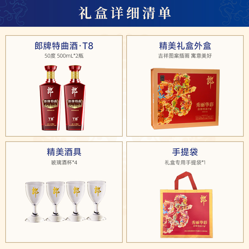 500mL 2瓶 兼香型 秀麗華彩禮盒 郎酒 郎牌特曲T8 50度抖音小紅書同款網(wǎng)紅熱銷 - 白酒/調香白酒 - 淘寶網(wǎng)