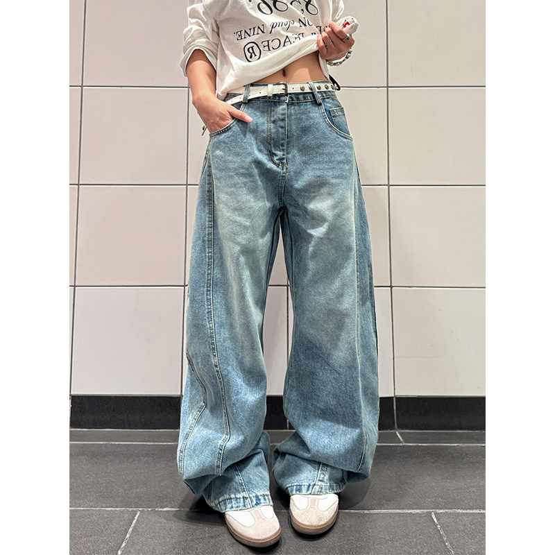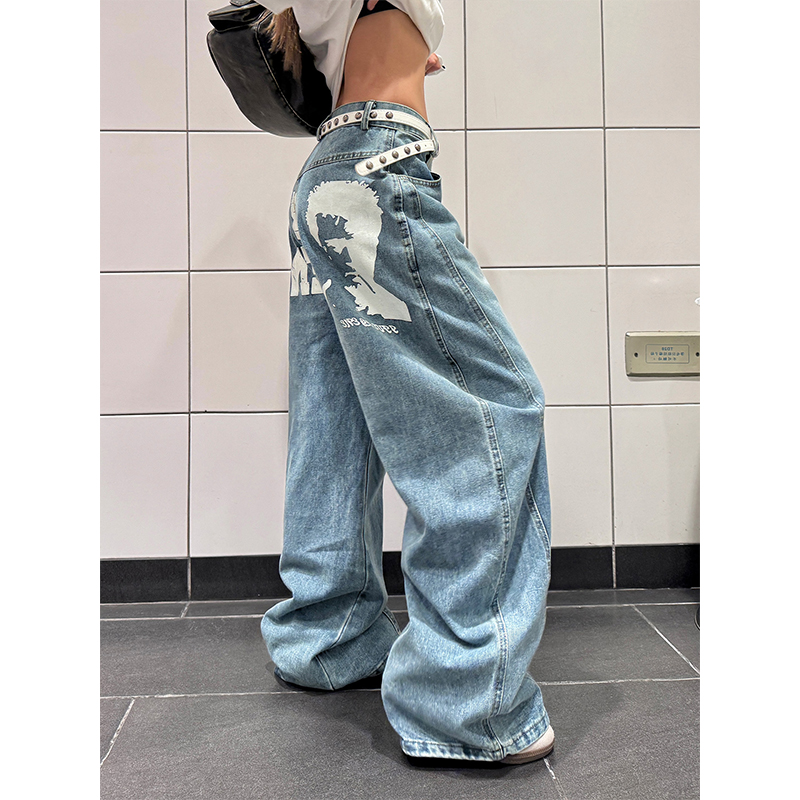 為您提供商品新款 美式 女2025秋季 直筒百搭闊腿褲 復(fù)古寬松水洗印花彎刀牛仔褲 子的詳細介紹,