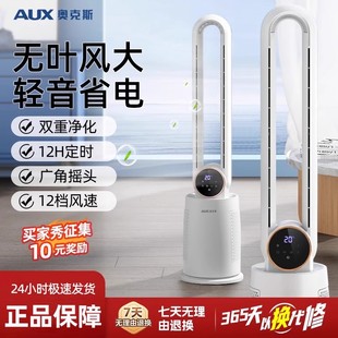 AUX 節(jié)能遙控 輕音直流落地扇可搖頭立式 奧克斯無葉風(fēng)扇家用觸屏款