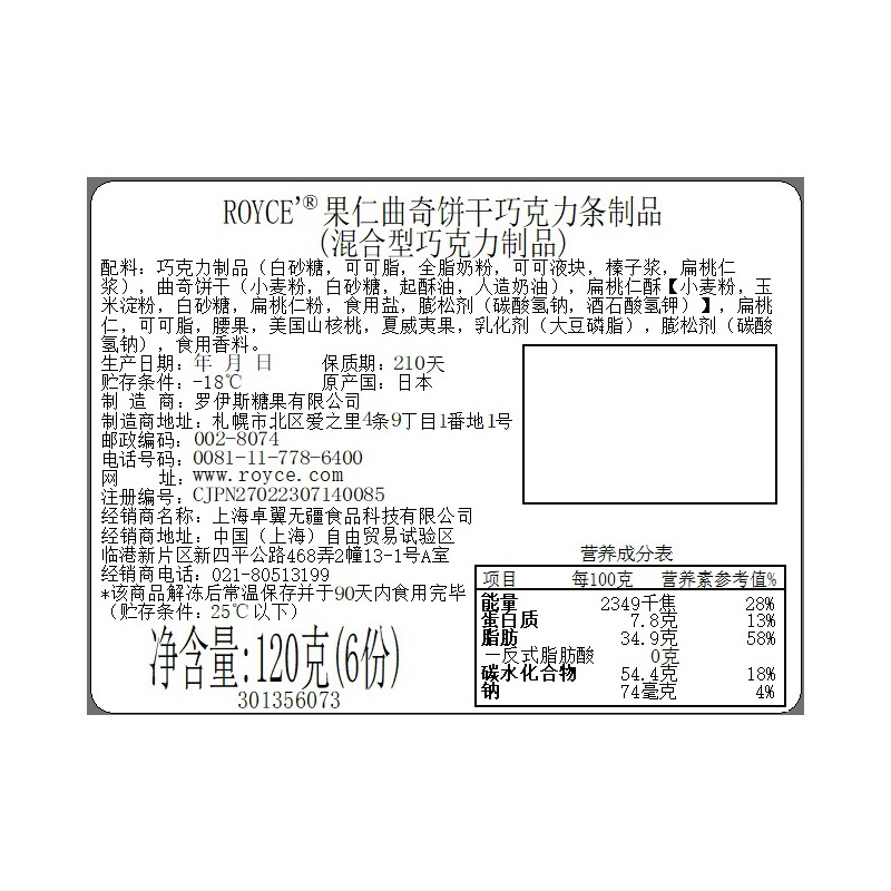 為您提供商品ROYCE 若翼族高端果仁抹茶曲奇巧克力條日本進口零食節(jié)日生日禮物的詳細介紹,
