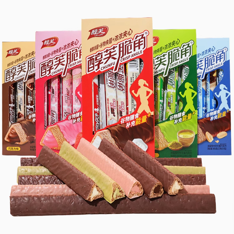 醇芙脆角巧克力夾心燕麥能量棒熔巖三角酥金字塔威化夾心餅干零食