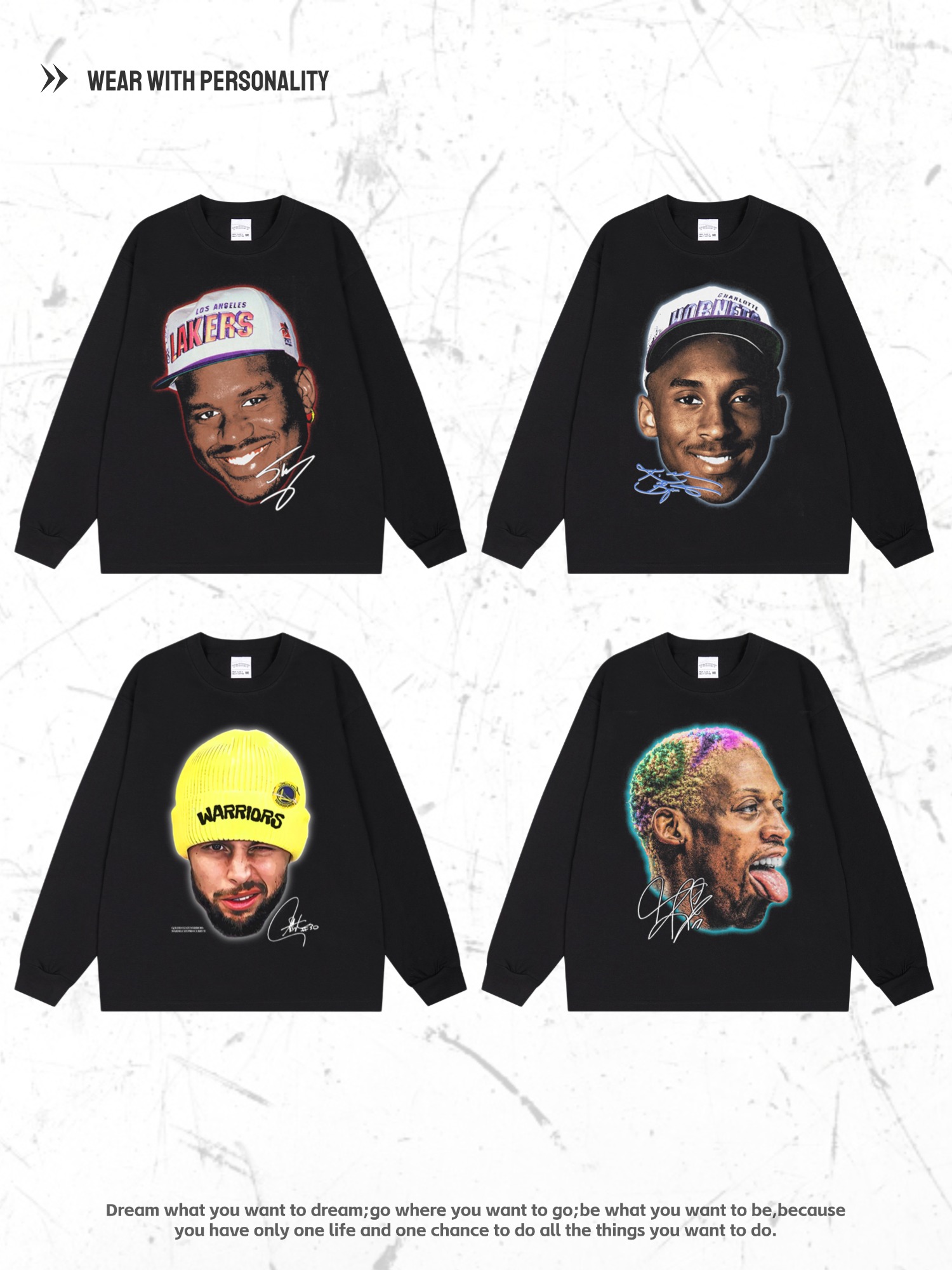 庫里羅斯科比美式 球星運動寬松純棉數(shù)碼 復(fù)古直噴圓領(lǐng)籃球大頭長袖抖音小紅書同款網(wǎng)紅熱銷 - T恤 - 淘寶網(wǎng)