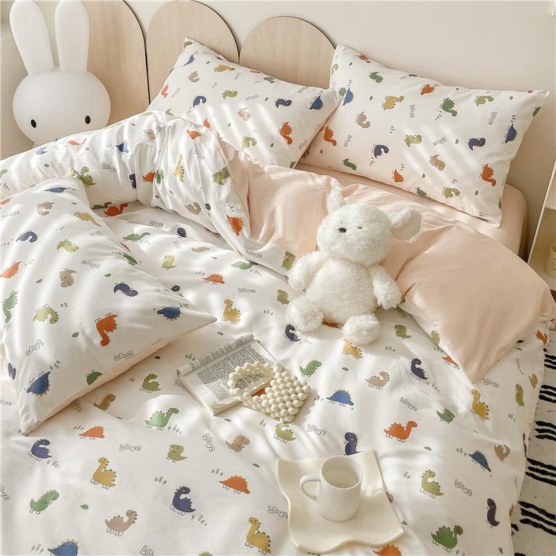 雙層紗全棉印花四件套多層紗純棉套件純色簡約可愛小清新印花床品