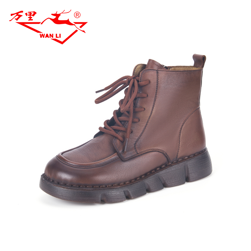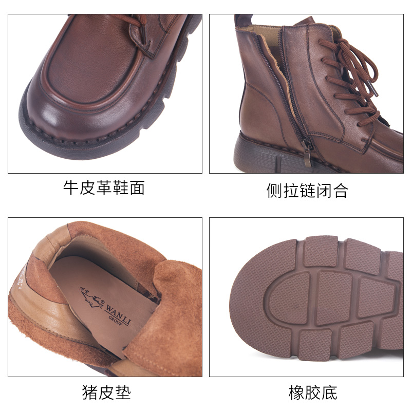 休閑馬丁靴真皮短筒靴時(shí)尚 萬里新款 側(cè)拉鏈復(fù)古女靴HYT618DS