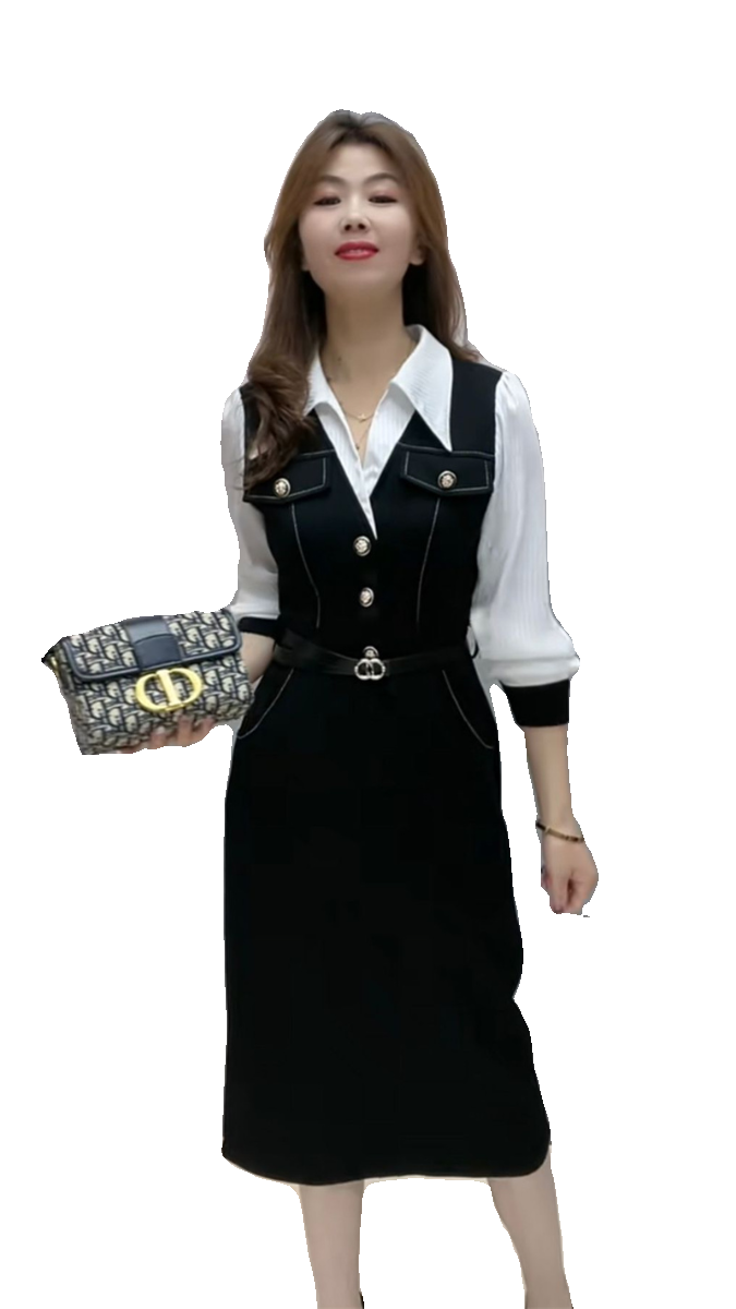 時尚 領(lǐng)連衣裙 2023年秋季 赫本風(fēng)爆款 新款 襯衫 女裝 洋氣收腰顯瘦長款