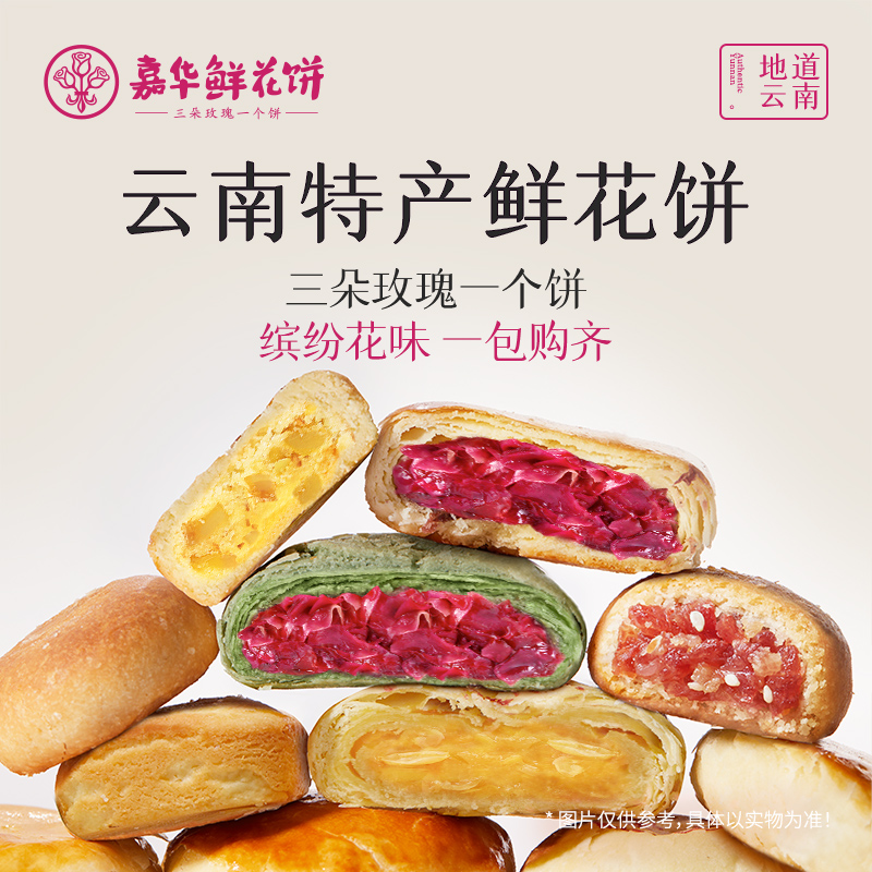 嘉華鮮花餅玫瑰花抹茶多口味組合云南特產(chǎn)零食傳統(tǒng)糕點心餅干早餐