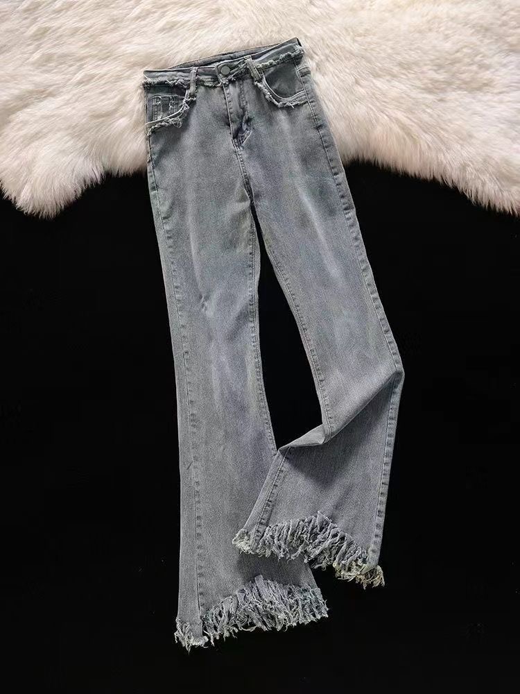 t恤上衣女高腰微喇牛仔褲 夏季 不規(guī)則辣妹學(xué)生短款 兩件套裝 韓版 女