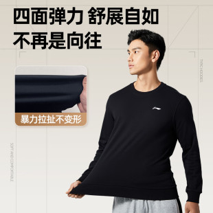 男士 運動長袖 春秋款 上衣正品 加絨圓領(lǐng)套頭衫 李寧衛(wèi)衣男2025新款