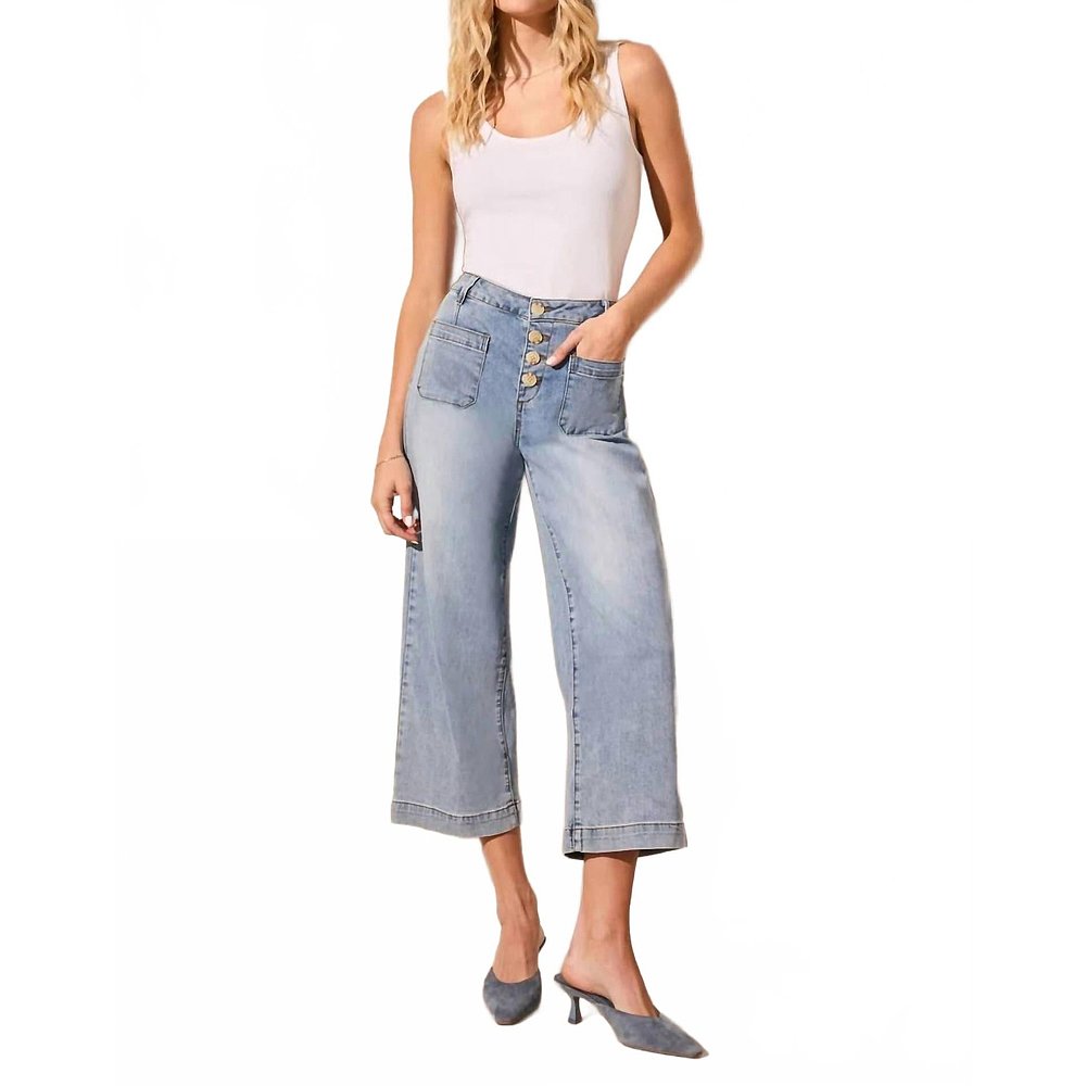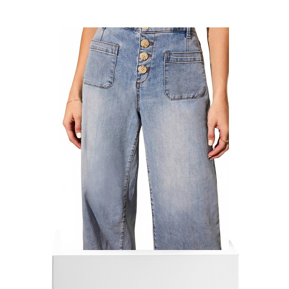 Wide Sanded Jeans Crop Blue 自營(yíng)tribalAudrey sanded Leg