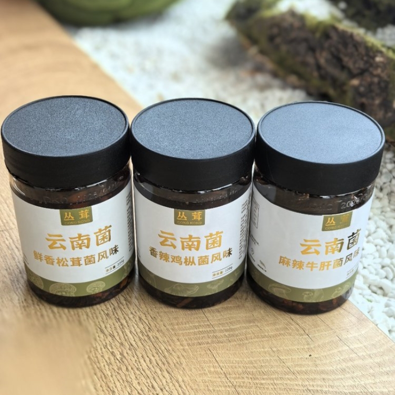 叢茸云南菌220g 3瓶三種口味開蓋即食拌面拌飯夾饅頭下飯小吃