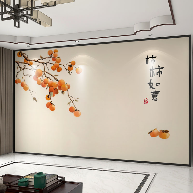 為您提供商品墻紙3d新中式 柿柿如意電視背景墻壁布客廳壁畫臥室墻布影視墻壁紙的詳細(xì)介紹,