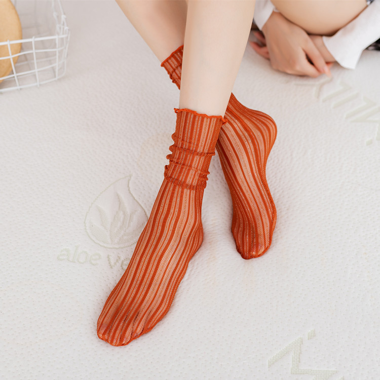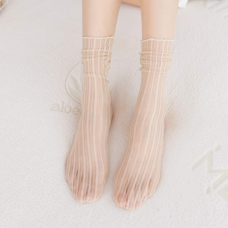 超薄女襪女木耳邊堆堆襪鏤空網(wǎng)紗襪日系復古亮絲中筒襪涼鞋 夏季 襪