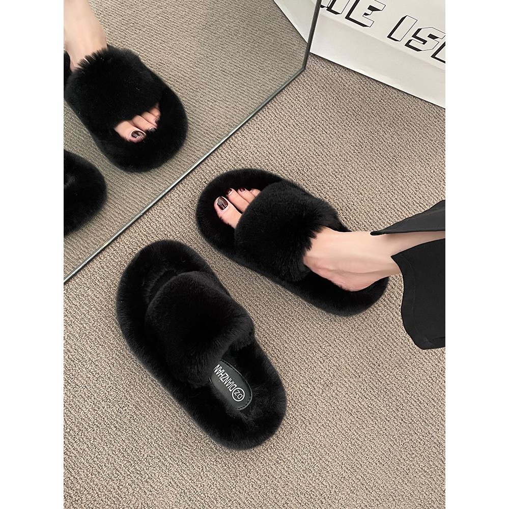 ins潮鞋 秋冬2024家居棉拖鞋 女外穿2025新款 子春夏季 韓版 毛毛拖鞋