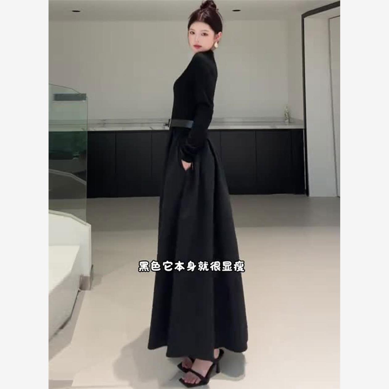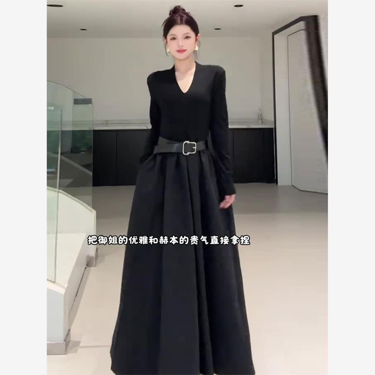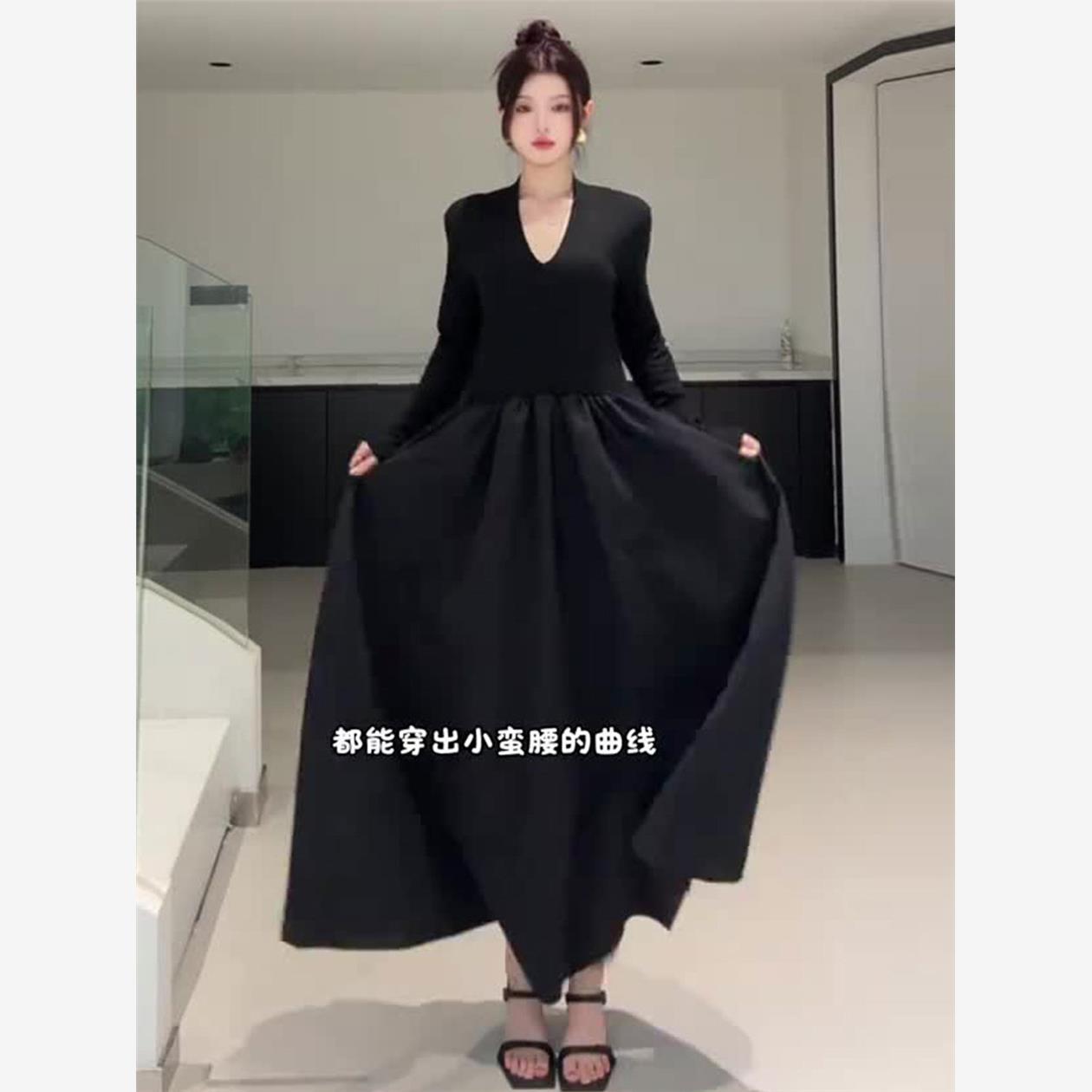 黑色氣質連衣裙女秋冬2025新款 赫本風法式 設計感v領顯瘦長裙 大碼抖音小紅書同款網紅熱銷 - 連衣裙 - 淘寶網