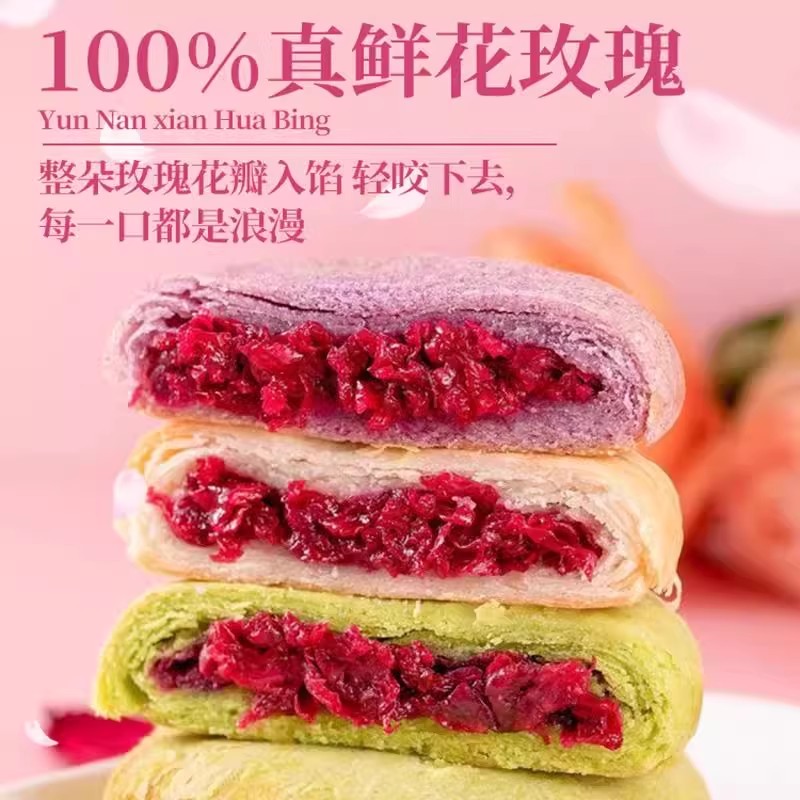 鮮花餅云南正宗特產(chǎn)官方旗艦店休閑零食早餐面包玫瑰花糕點心小吃