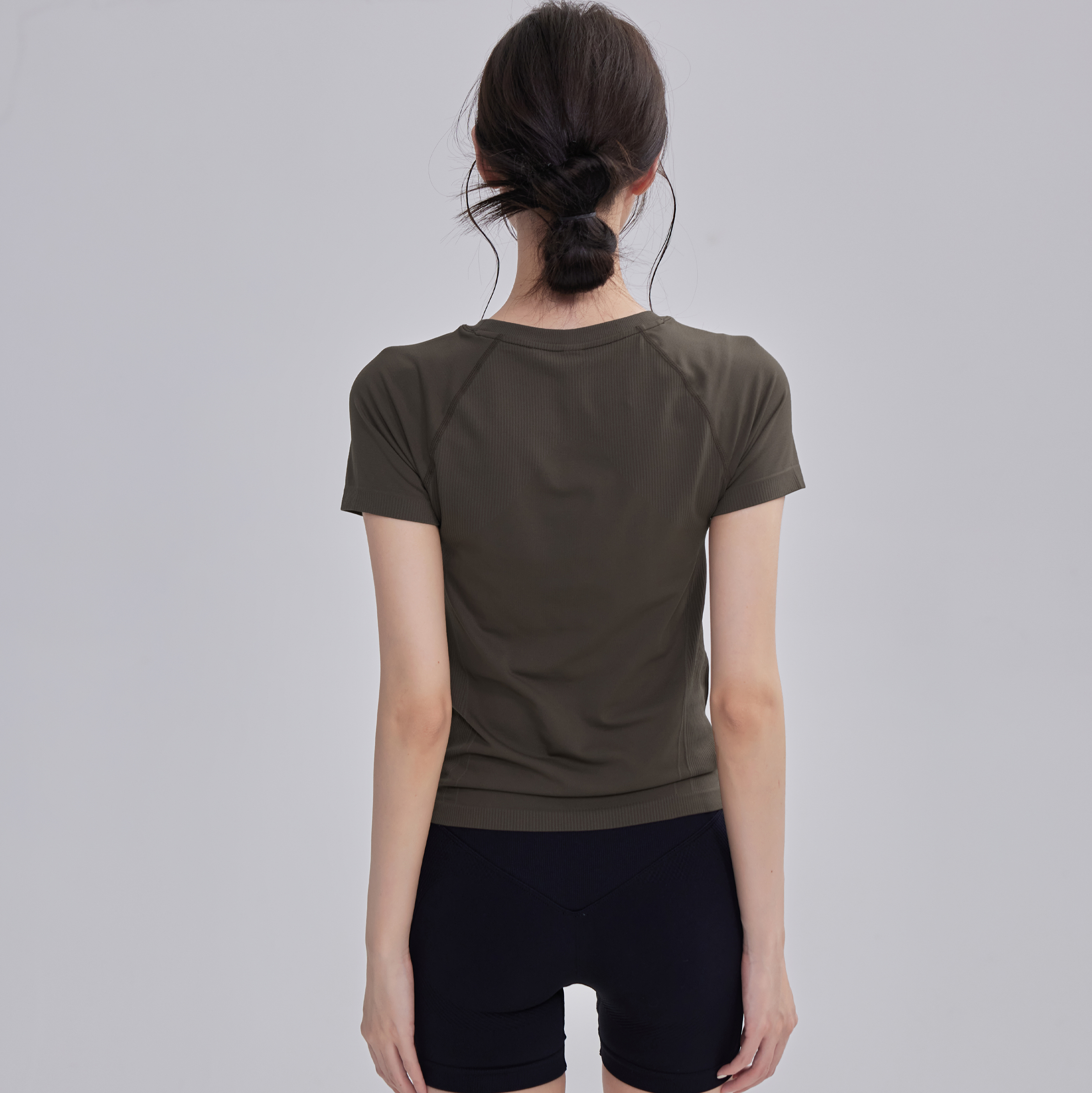T恤女修身 速干運(yùn)動(dòng)短袖 顯瘦透氣瑜伽上衣跑步普拉提專業(yè)健身服新