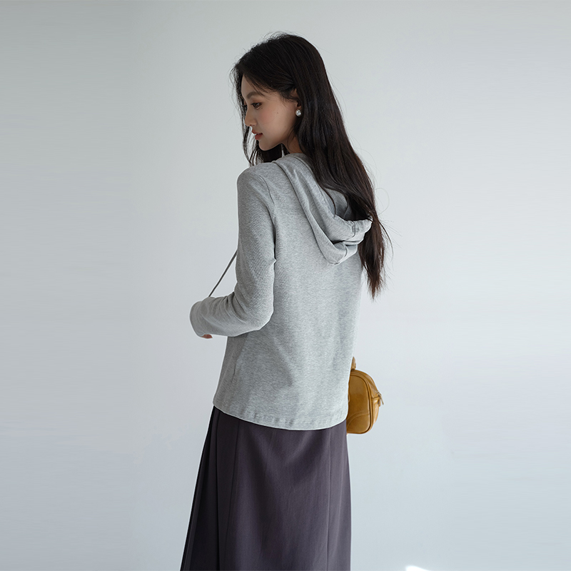 磨絨連帽針織衫 藍(lán)若水2025新款 大碼 秋裝 胖mm小個(gè)子顯瘦套頭上衣女