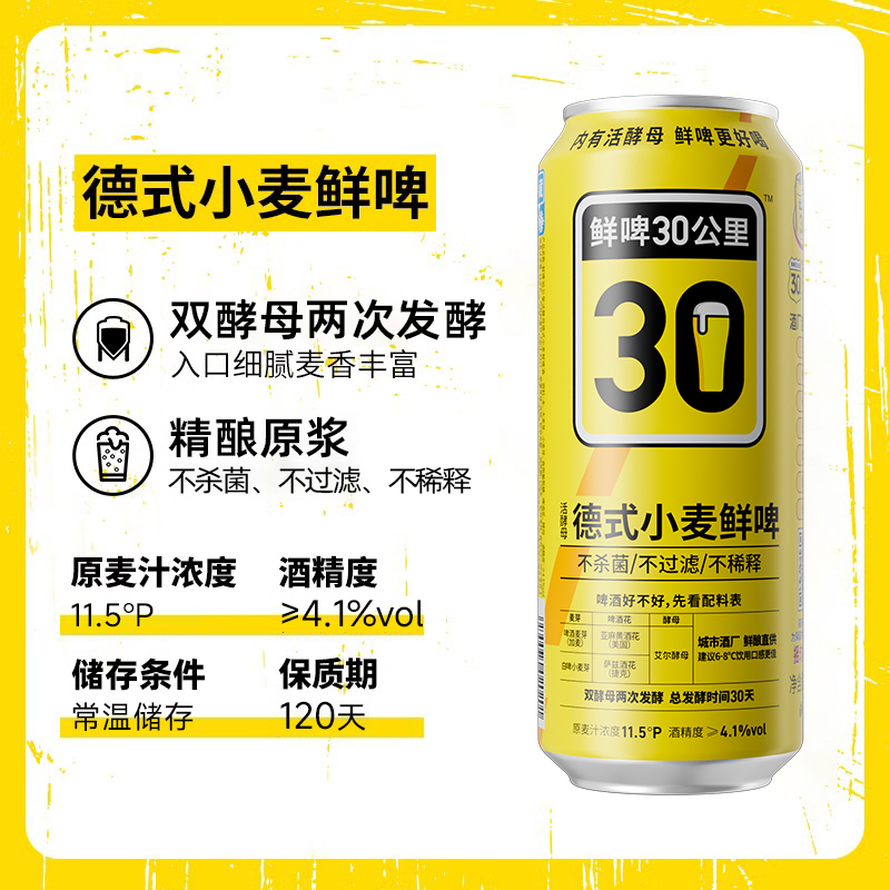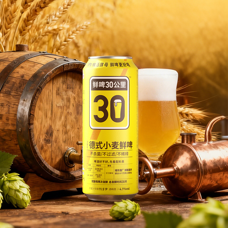 鮮啤30公里啤酒精釀德式 4罐整箱 啤酒500ML 小麥原漿生啤易拉罐裝