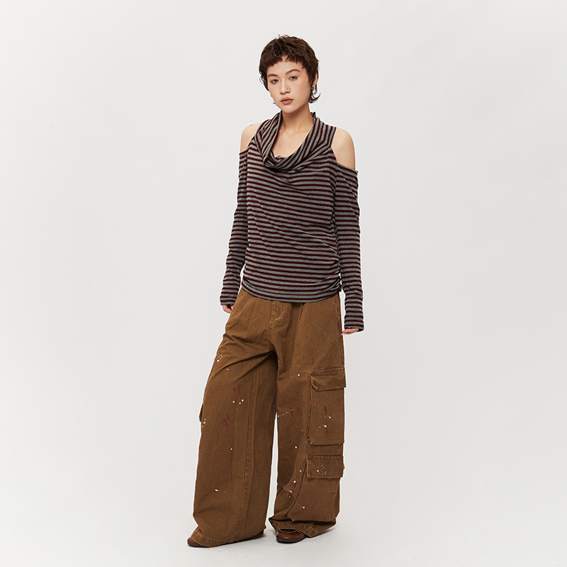為您提供商品T恤女修身 AIRHOOD2025秋季 美式 復(fù)古條紋蕩領(lǐng)露肩長袖 顯瘦辣妹上衣的詳細介紹,