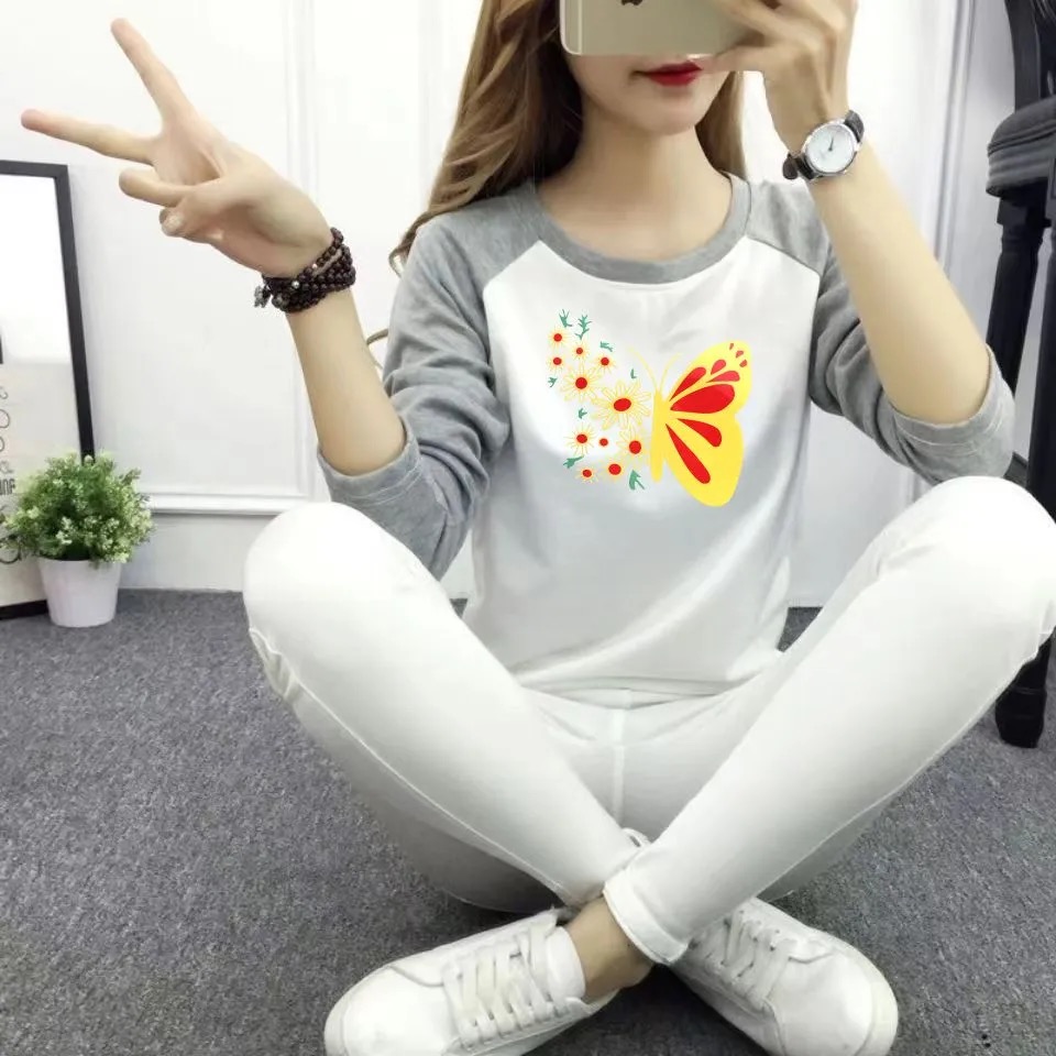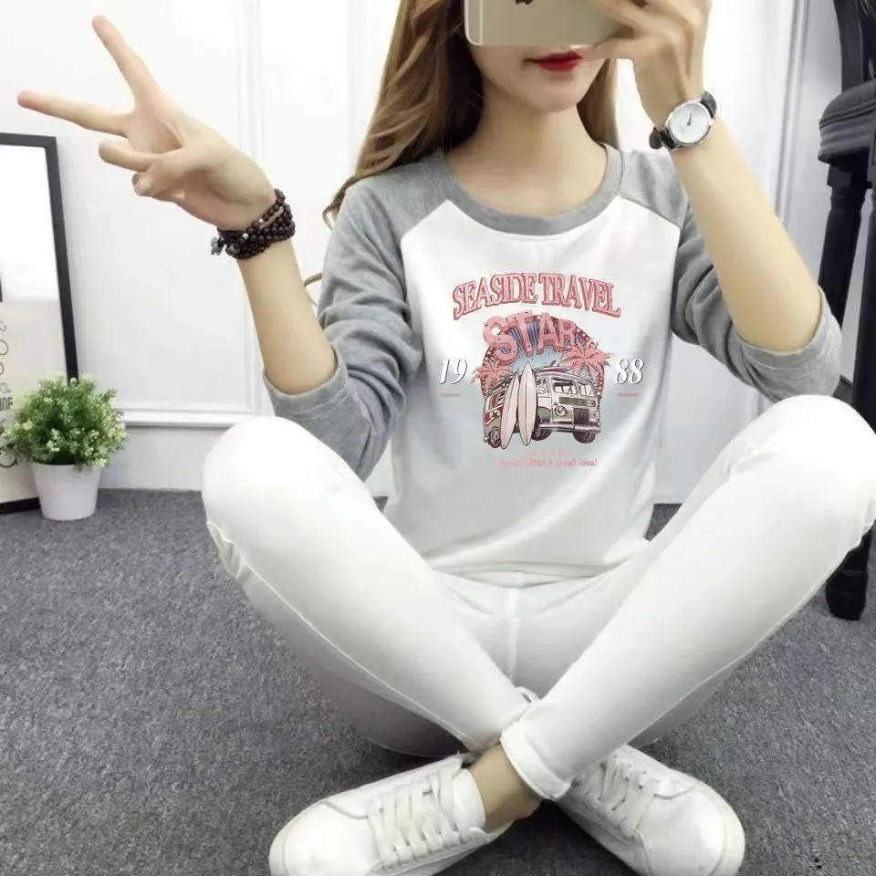 T恤少女春秋初中高中學(xué)生外穿內(nèi)搭寬松打底衫 純棉長袖 冬撞色上衣