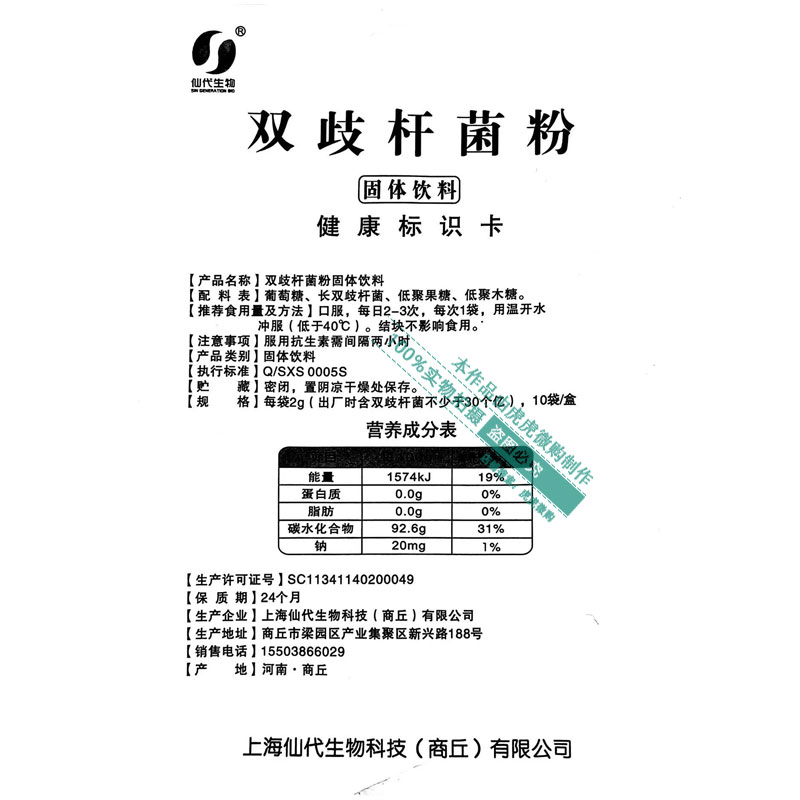 仙代生物風(fēng)火神丹雙歧桿菌粉固體飲料2g 藥店直發(fā) 10袋裝 10袋