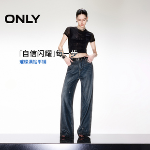 新款 滿天星燙鉆高腰老爹褲 熱銷爆款 直筒牛仔褲 女 ONLY2025秋季