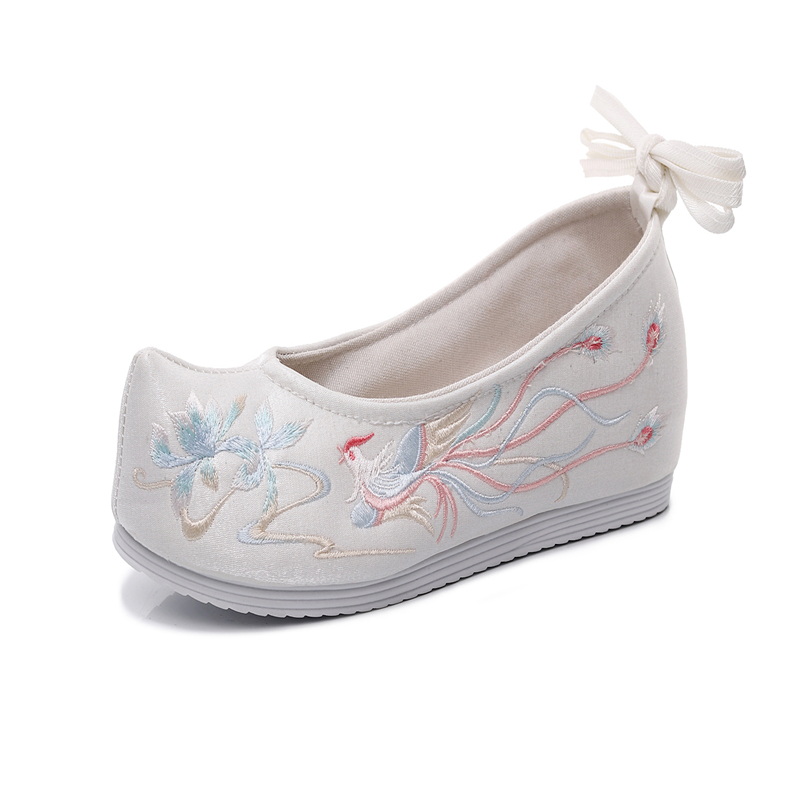 鞋 春秋原創(chuàng)國(guó)風(fēng)漢服鞋 搭配古裝 內(nèi)增高翹頭弓鞋 子女古風(fēng)繡花鞋 淡雅