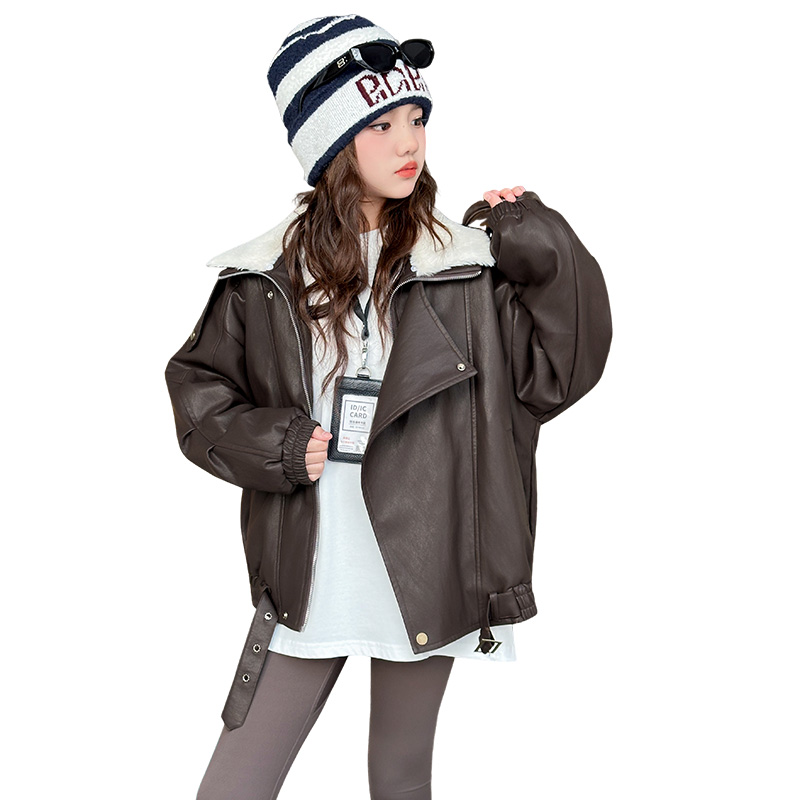 2025新款 女童皮衣外套秋冬季 中大童酷颯風機車高級感加厚皮夾克潮