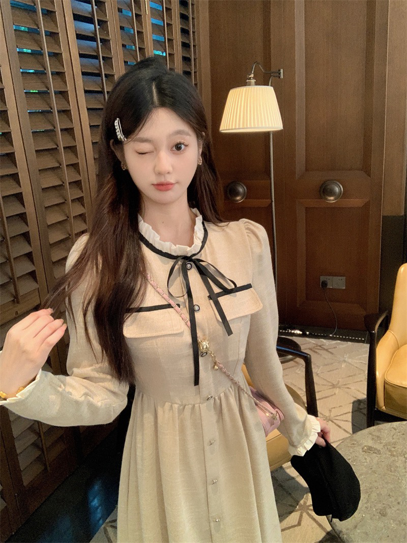 為您提供商品小香風名媛氣質連衣裙女秋冬2024新款 裙子 系帶長袖 收腰顯瘦中長款的詳細介紹,