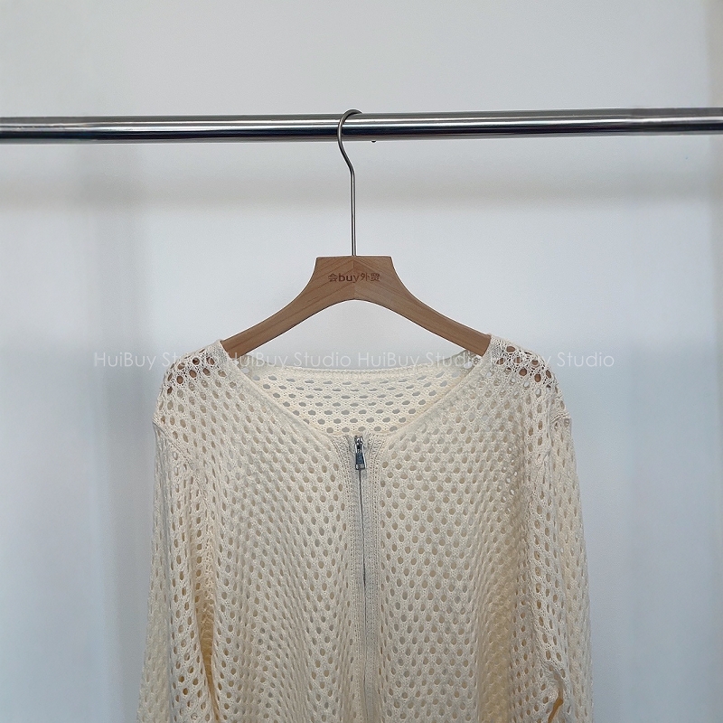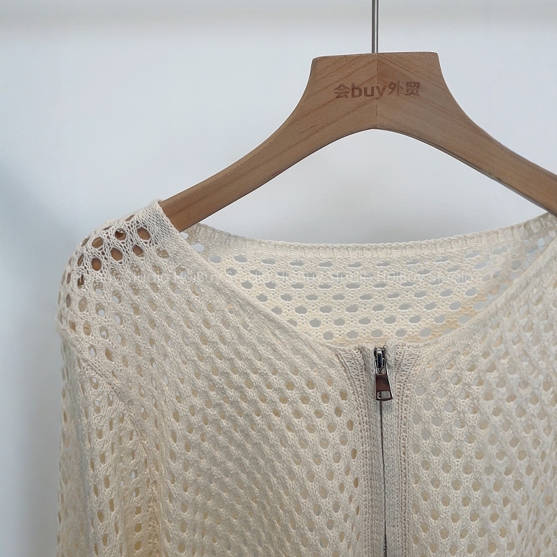 花式 上衣女春季 涼感針織拉鏈開衫 長(zhǎng)袖 精致鏤空 新款 涵養(yǎng)美 紗線