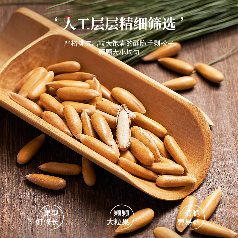 百草味東北松子堅(jiān)果手剝干果仁休閑零食特產(chǎn)小吃手拔開口大顆