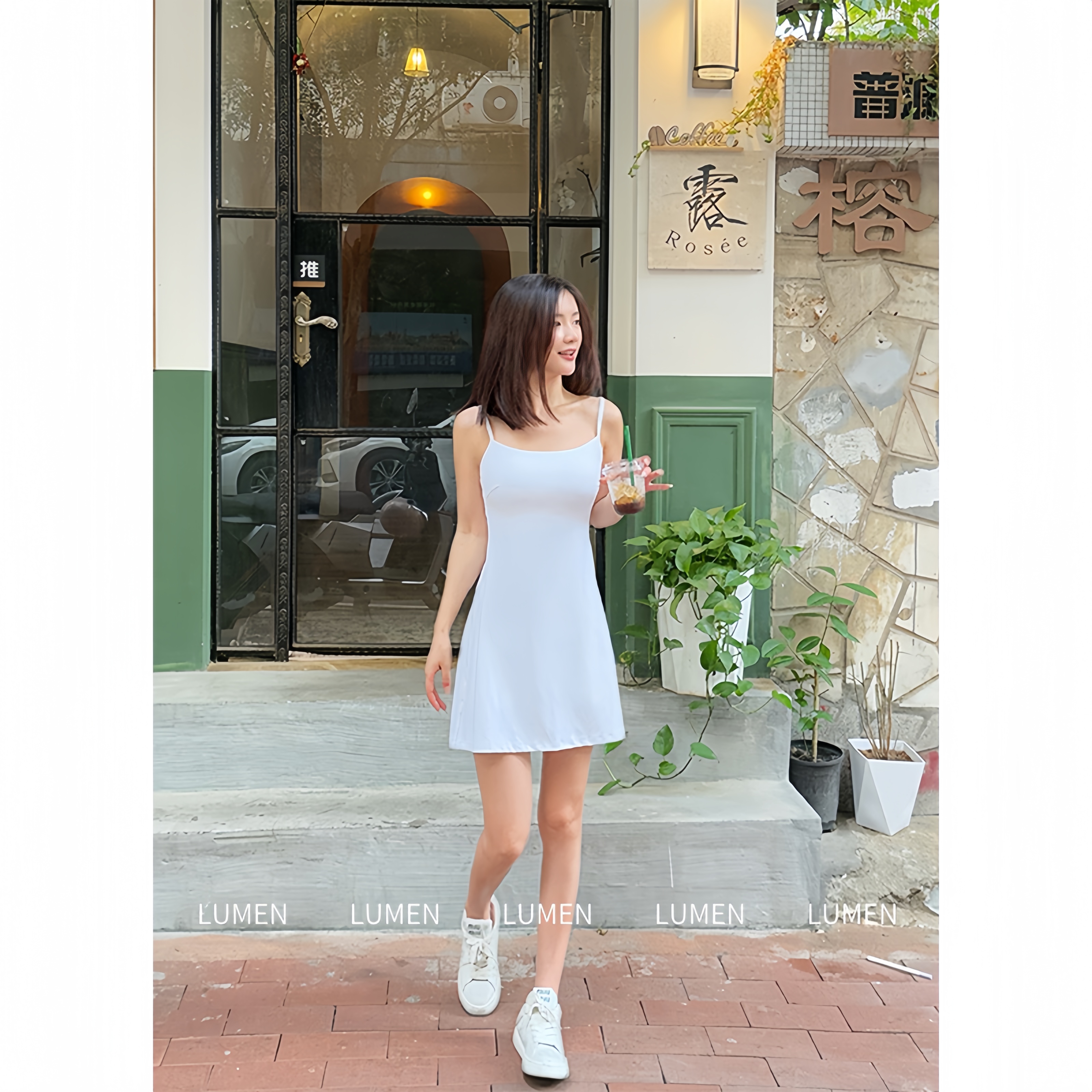 luqi lulu網(wǎng)球高爾夫吊帶裙胸墊顯瘦露背百搭瑜伽運動鏤空連衣裙抖音小紅書同款網(wǎng)紅熱銷 - 運動連衣裙 - 淘寶網(wǎng)