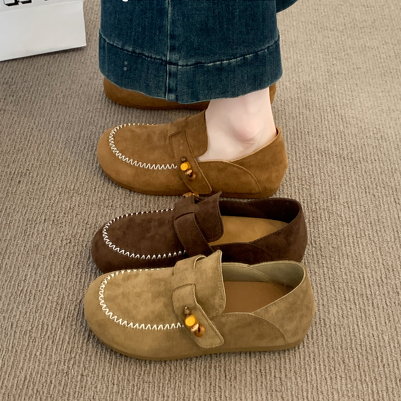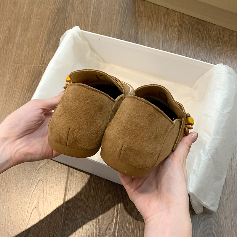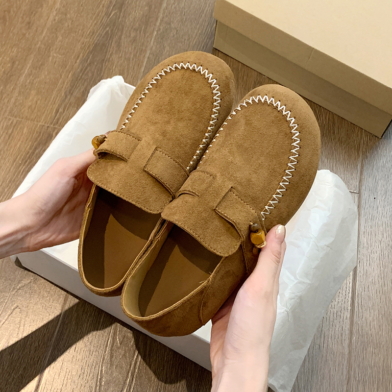 豆豆鞋 星期六真皮平底加絨淺口單鞋 女2024秋冬新款 溫柔風(fēng)勃肯鞋 子