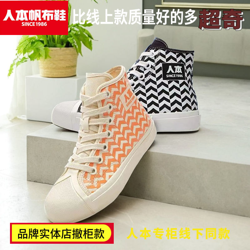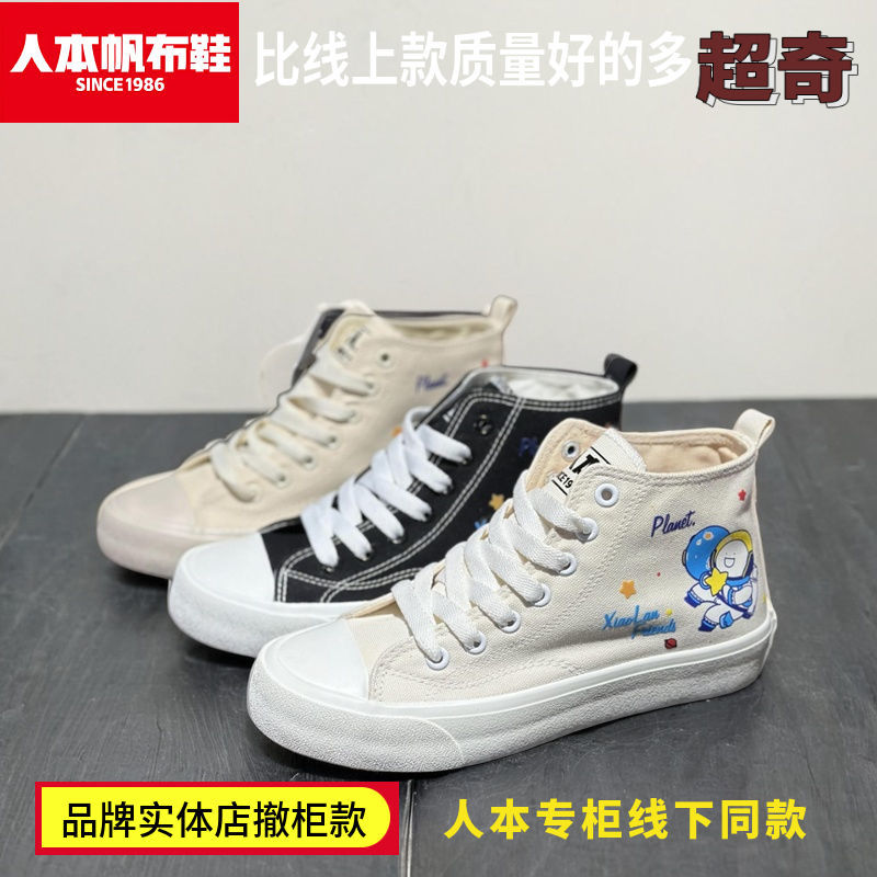新款 人本撤柜高幫帆布鞋 秋季 原創(chuàng)街拍潮鞋 女小眾設計平底板鞋 子女