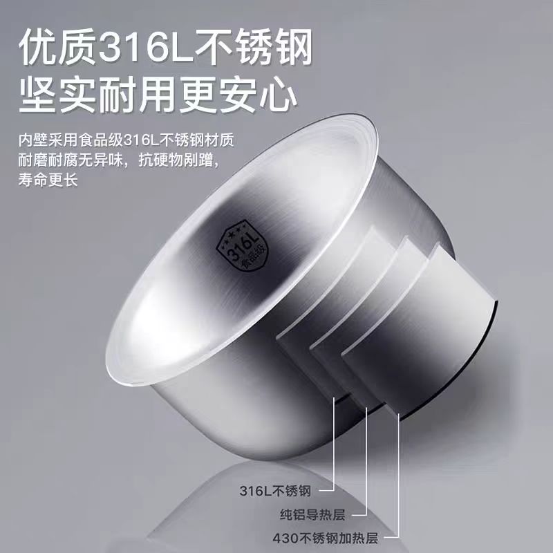 美 IH電飯煲家用電飯鍋3到4人0涂層316L不銹鋼不粘內(nèi)膽煮小米粥