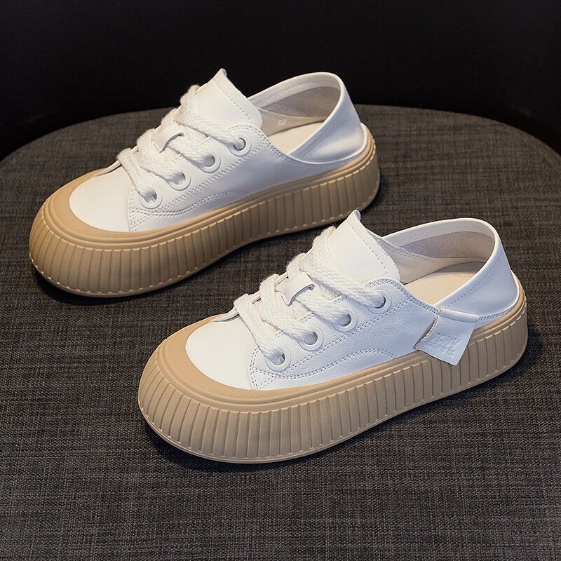 厚底板鞋 女 駱駝月牙德訓鞋 情侶款 休閑運動鞋 王俊凱同款 阿甘鞋
