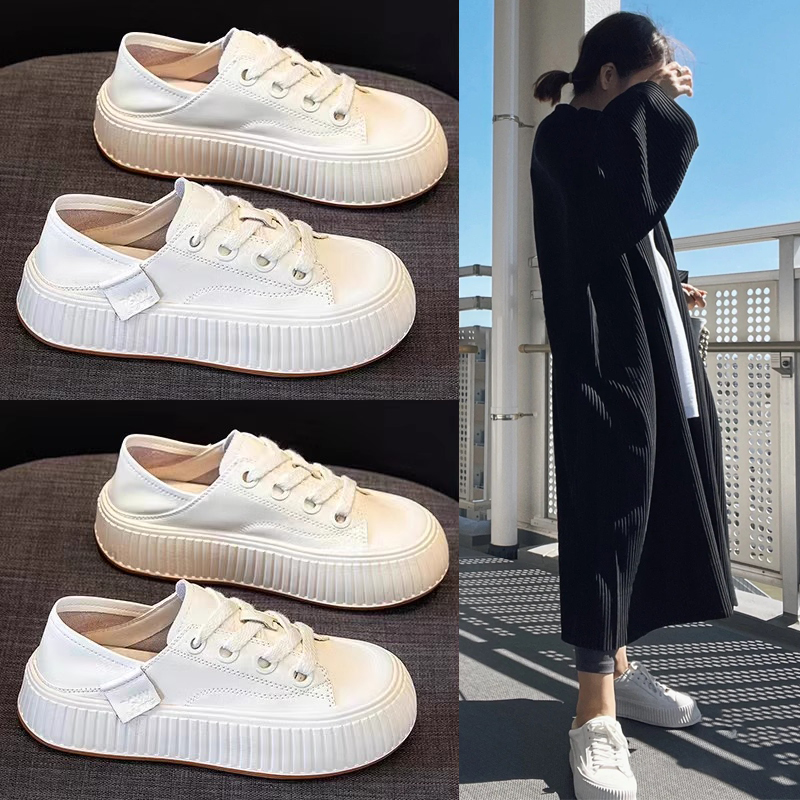 百搭休閑平底板鞋 爆款 女2025春夏季 單鞋 子 新女鞋 hunnz真皮小白鞋