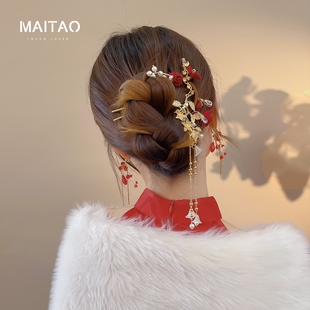 喜慶紅色玫瑰花流蘇發(fā)簪高級(jí)感U型簪子女古風(fēng)旗袍新娘敬酒服頭飾抖音小紅書(shū)同款網(wǎng)紅熱銷 - 發(fā)飾 - 淘寶網(wǎng)