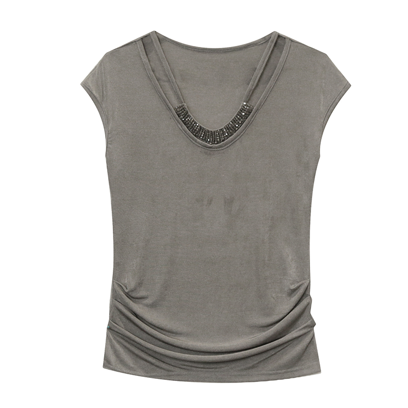 為您提供商品v領重工釘珠短袖 t恤女裝 新款 洋氣百搭顯瘦上衣潮別致小衫 時尚 夏季的詳細介紹,