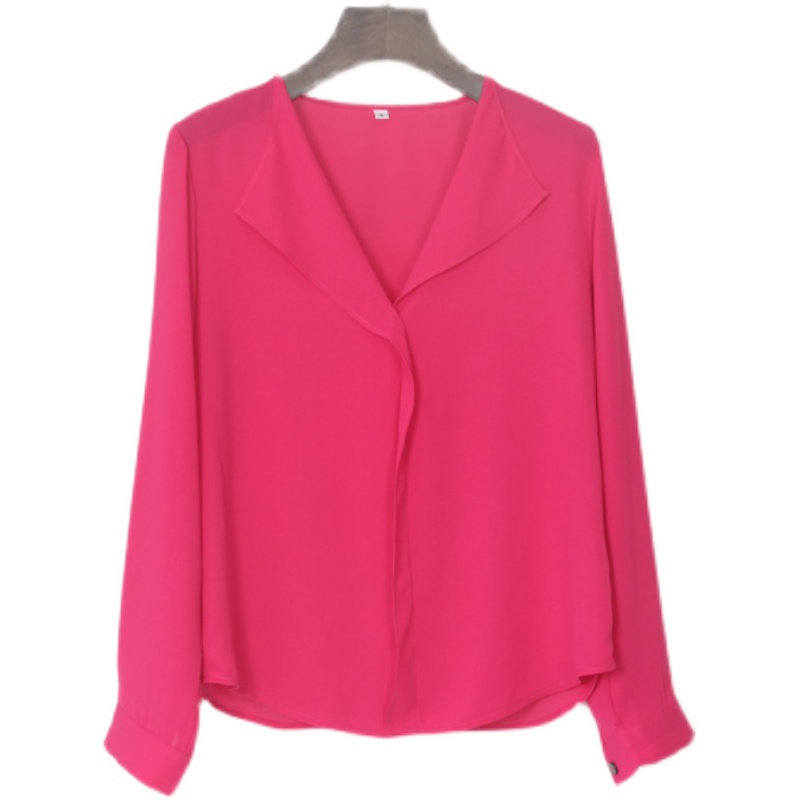 仙 雪紡衫 春夏季 寬松套頭洋氣小衫 溫柔V領(lǐng)翻邊純色長袖 新款 女襯衫抖音小紅書同款網(wǎng)紅熱銷 - 蕾絲衫/雪紡衫 - 淘寶網(wǎng)