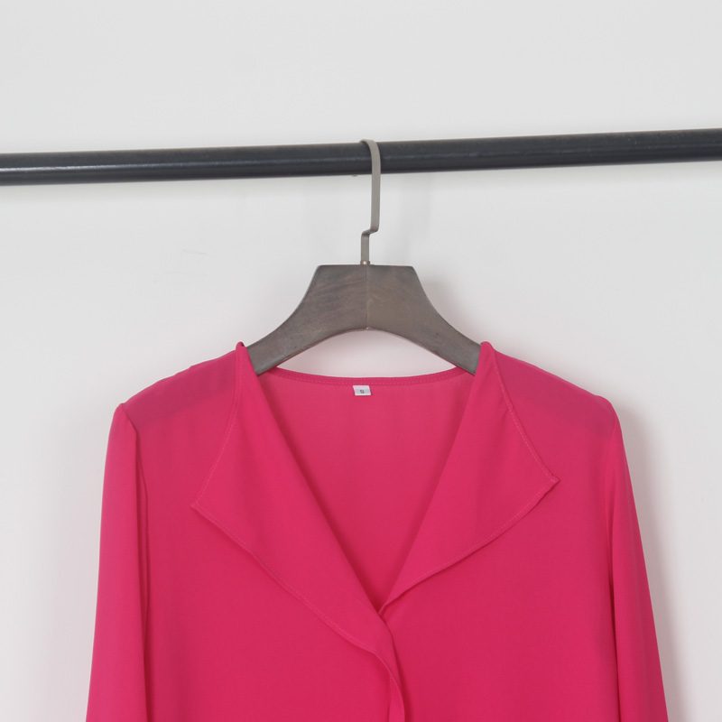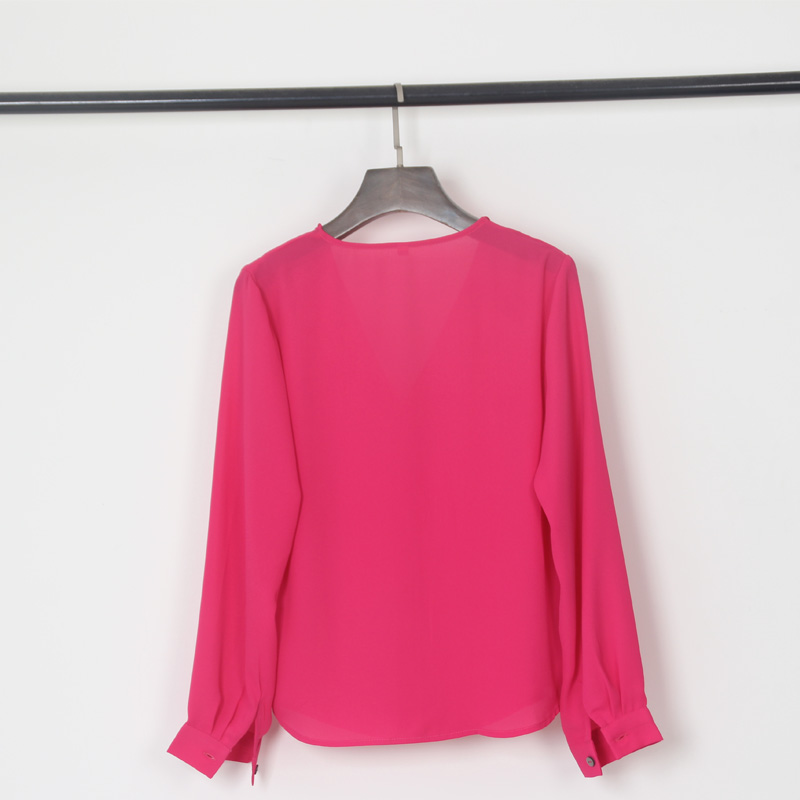 春夏季 新款 雪紡衫 寬松套頭洋氣小衫 仙 女襯衫 溫柔V領(lǐng)翻邊純色長袖
