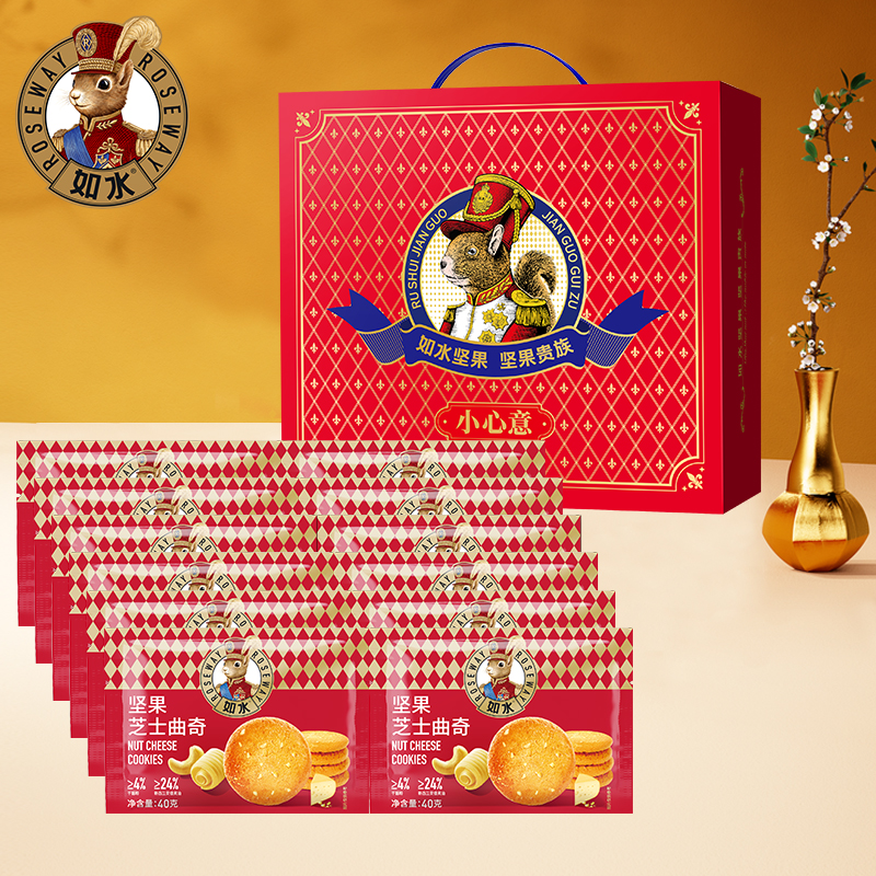 如水黃油堅(jiān)果曲奇40g×12袋小心意禮盒餅干好吃休閑食品袋裝 零食