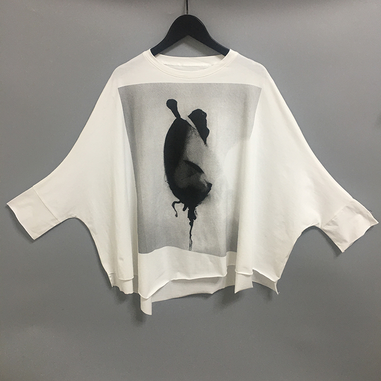 圣迪家女式 蝙蝠衫 圓領(lǐng)套頭印花不規(guī)則寬松針織衫