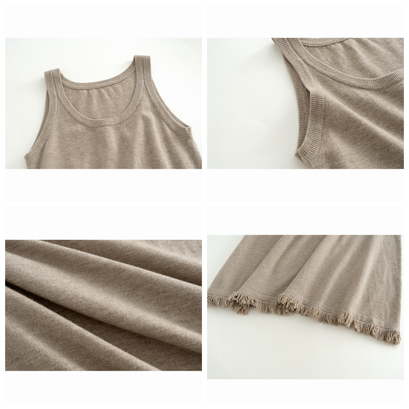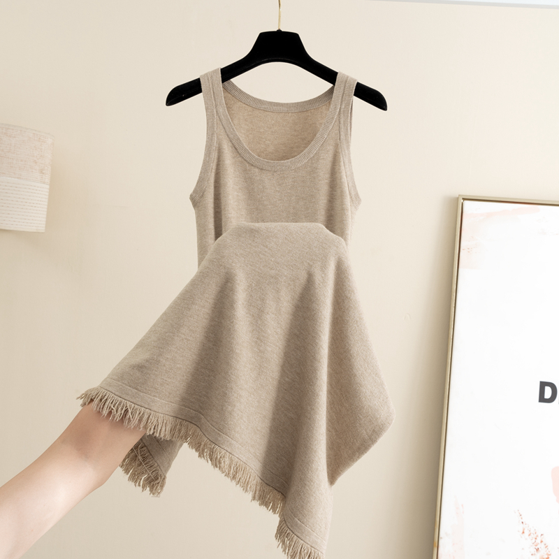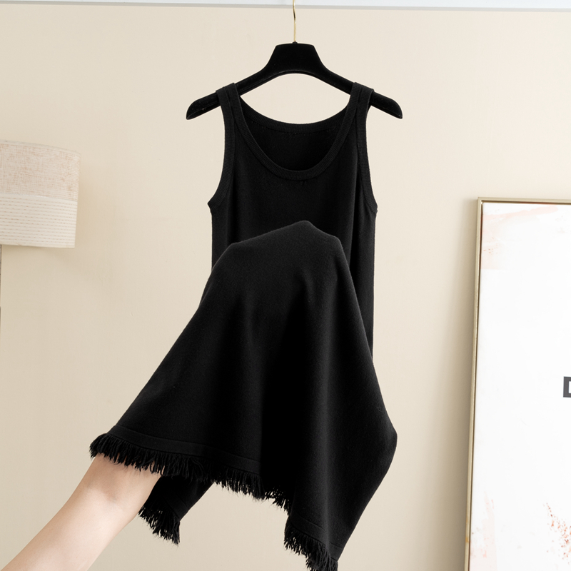 2025春秋新款 內(nèi)搭過膝毛衣裙子 無袖 針織吊帶背心連衣裙女中長款
